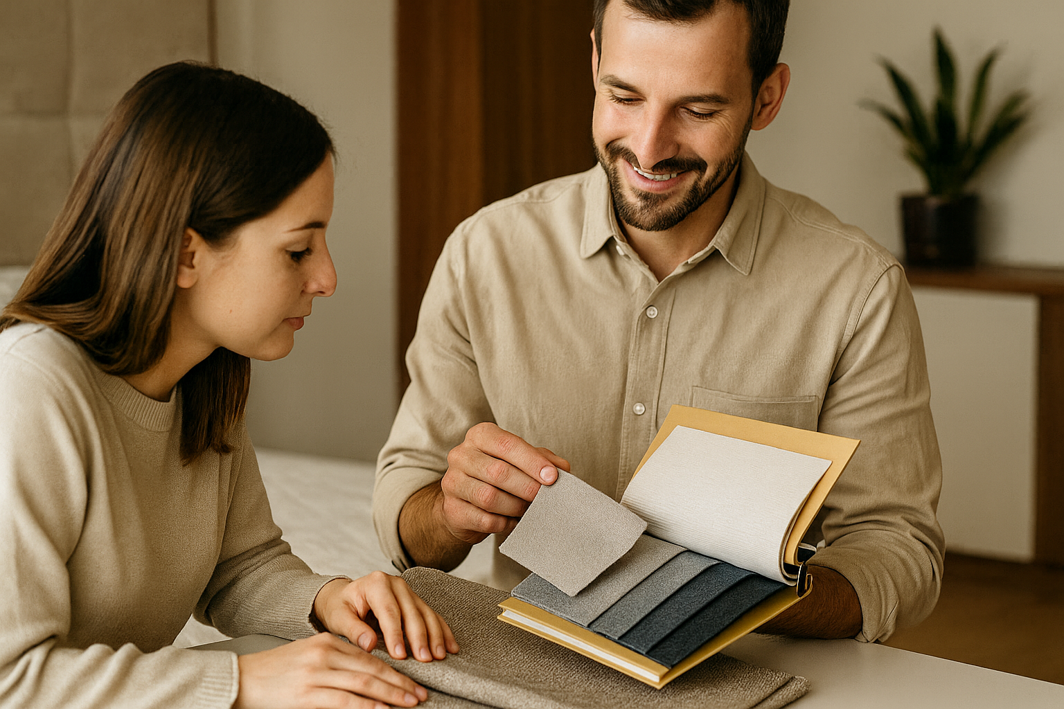 Finden Sie Ihren Favoriten: Bestellen Sie bis zu vier Stoffmuster kostenlos nach Hause, um Material, Farbe und Struktur live zu erleben.